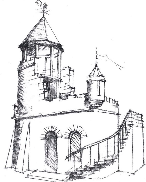 Yevgen Shneyderis, the founder and owner of Beykush, recollects how it all began: “Back in 2010, our family lived in the countryside, and I was engaged in things typical for men in their 30s or 40s. At some point my wife decided she wanted to have some special chickens. I thought building a basic chicken coop was boring. Why not build it in the form of a small castle? Children could play in the castle, I could store wine in the cellar, and there would be a chicken coop in the back. A young architect, Valentina Sysoeva from Mykolaiv, drew a sketch, and we began to build a chicken coop castle (below).